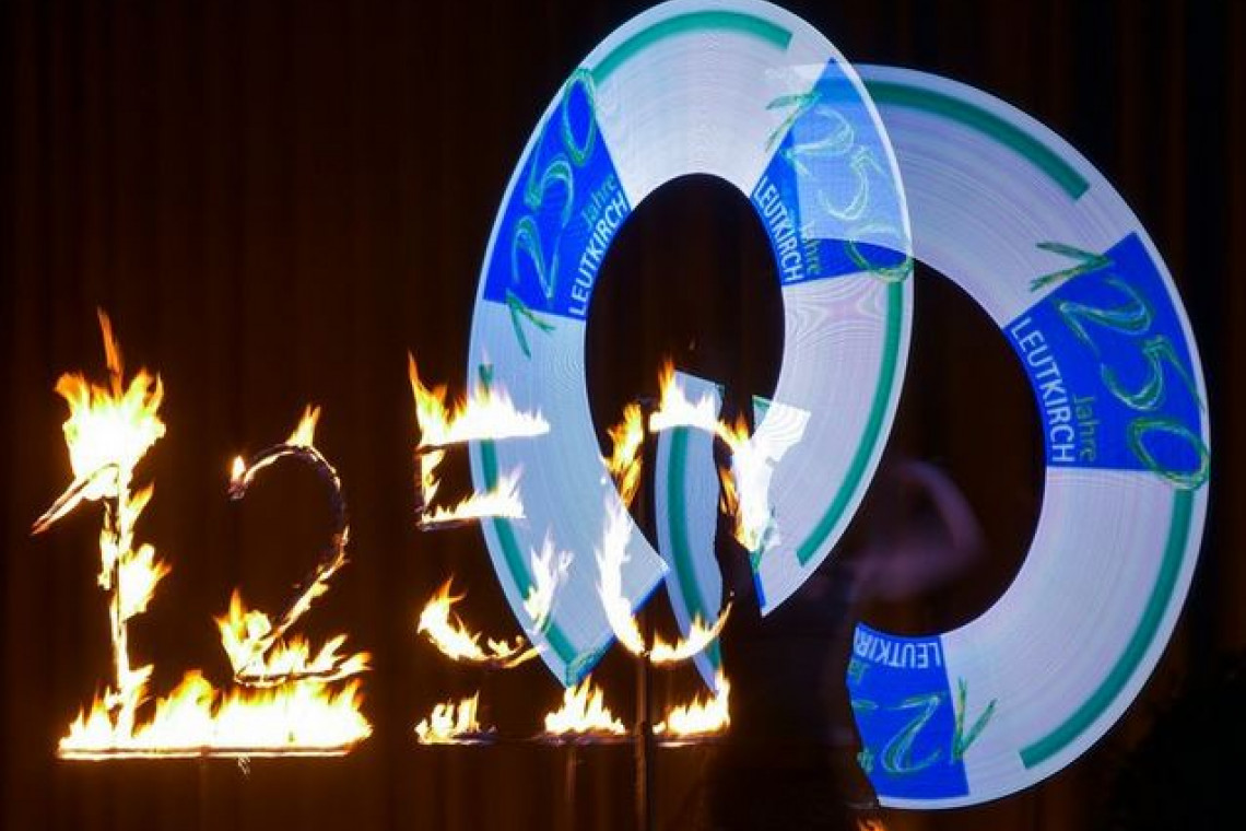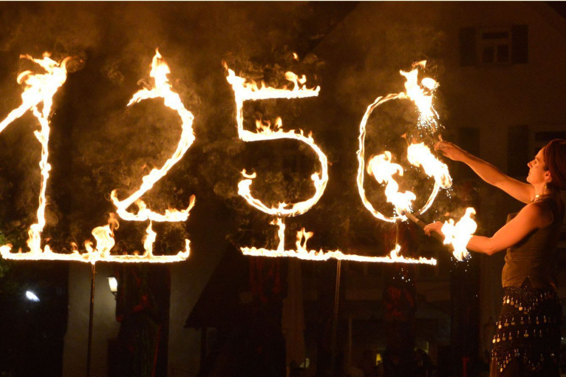 Die Feuer-Künstler setzen Ihren Namen, eine Zahl oder Ihr Logo in Szene. Das Entzünden der Feuerzahlen oder der Feuerschrift in Kombination mit einem Pyroeffekt schafft einen imposanten Höhepunkt Ihrer Feier. Das unvergessliche Erlebnis, das sich als Bild in Ihre Erinnerung brennt, eignet sich hervorragend für Ihr Firmenjubiläum.